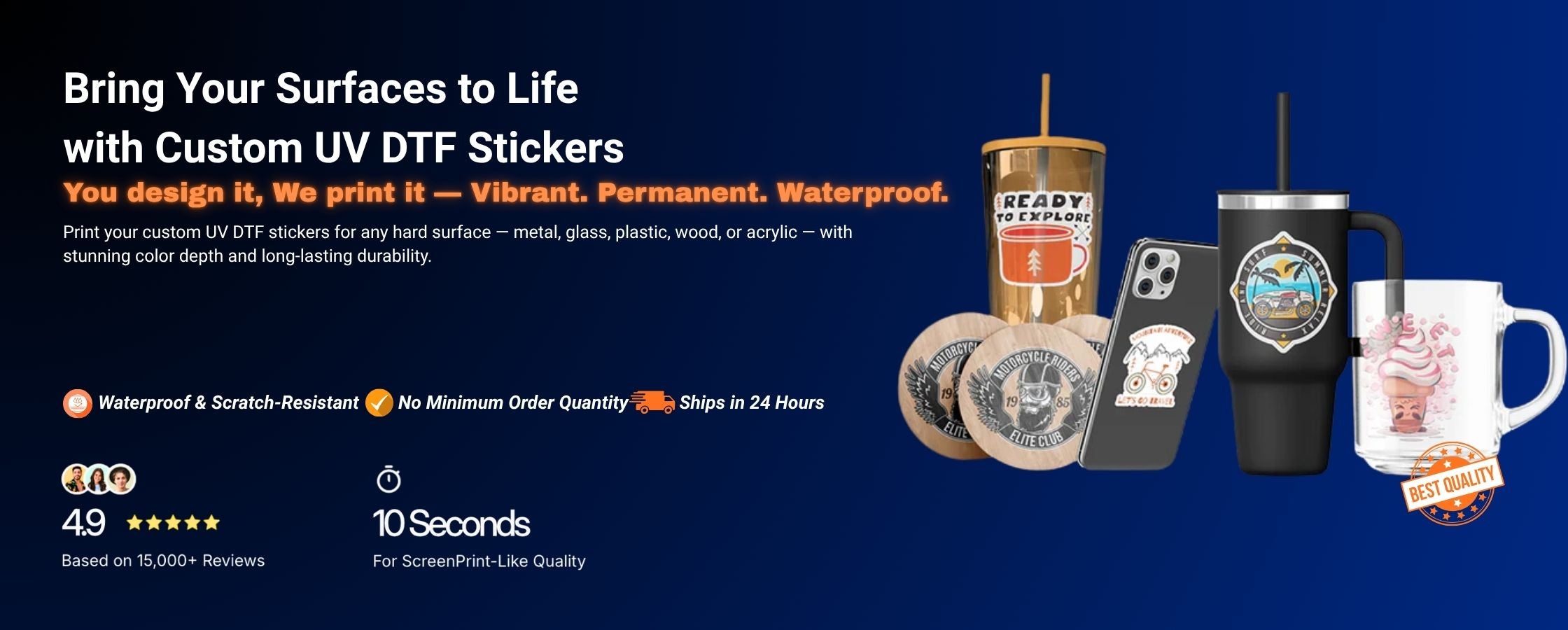 Enhance your products with our high-quality UV DTF Stickers! Designed for any solid surface, these customized stickers deliver exceptional durability and vivid colors that stand the test of time.