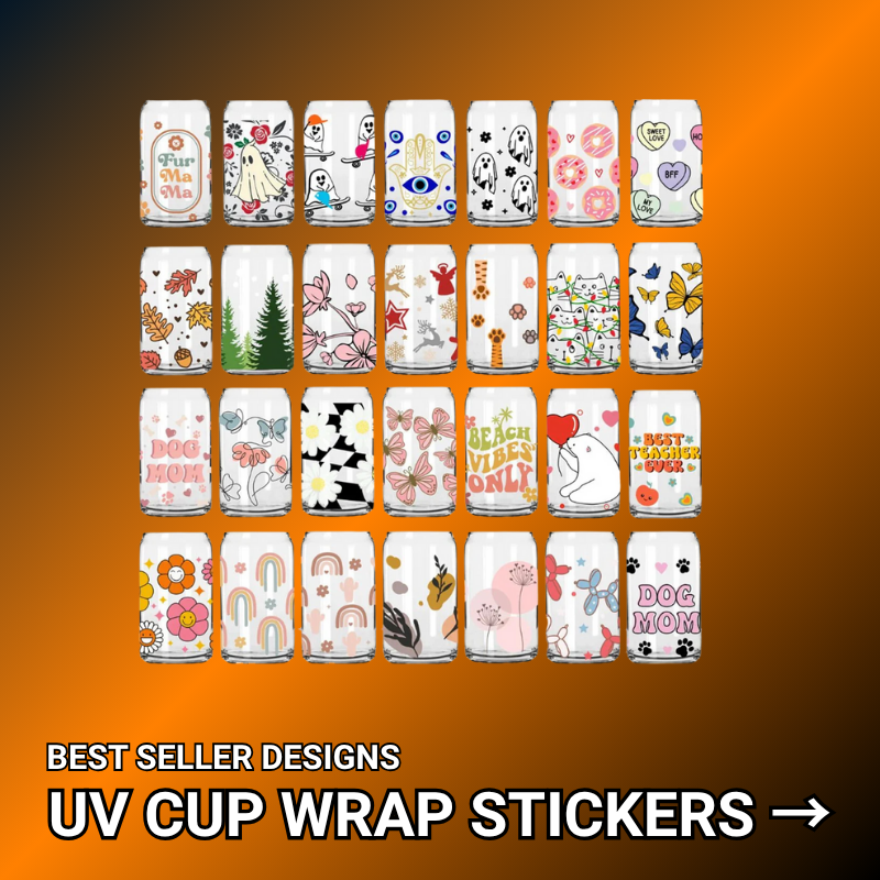 Whether you want to customize your laptop, add flair to a water bottle, or craft striking cup wrap designs, our UV decals are the perfect solution.